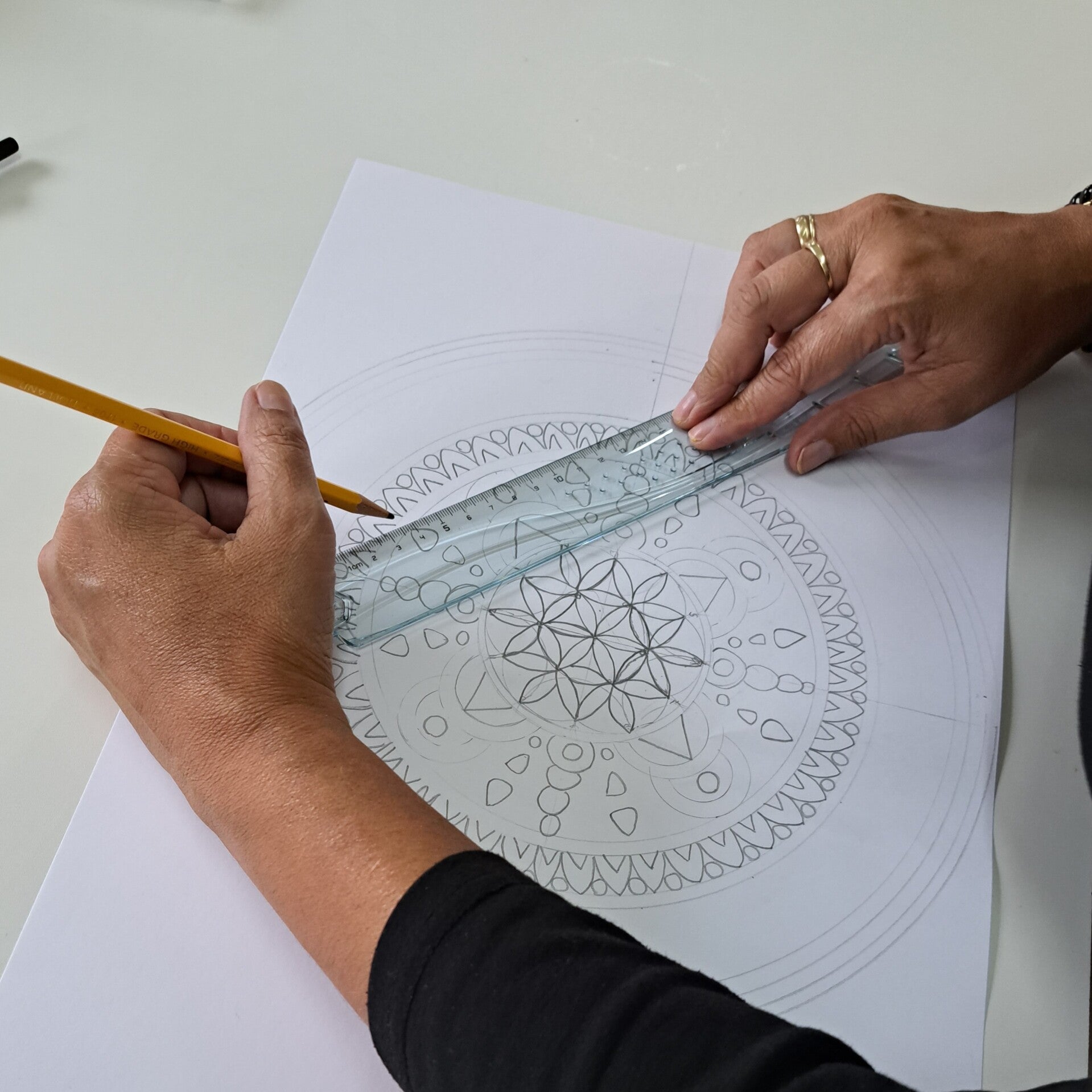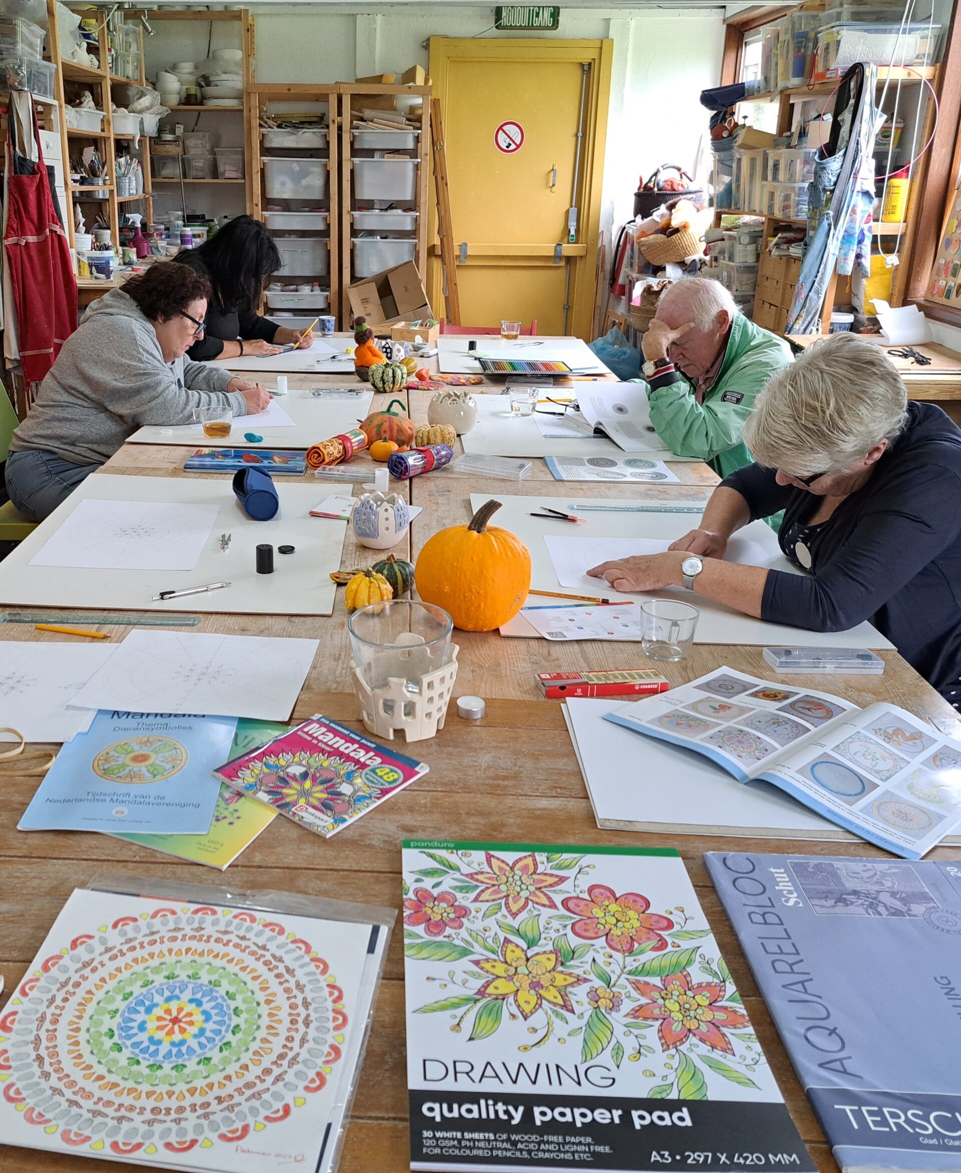 Mandala tekenen onder deskundige begeleiding van Lizette Littel