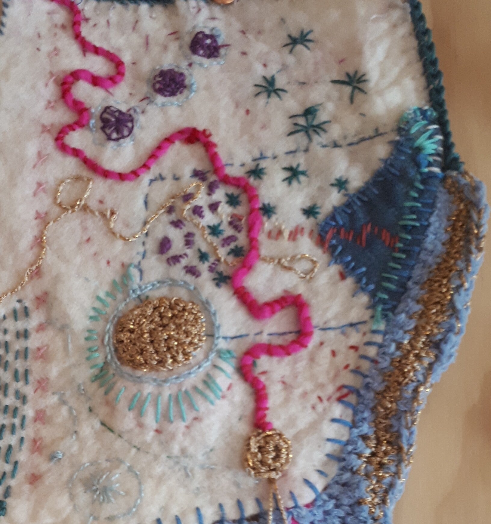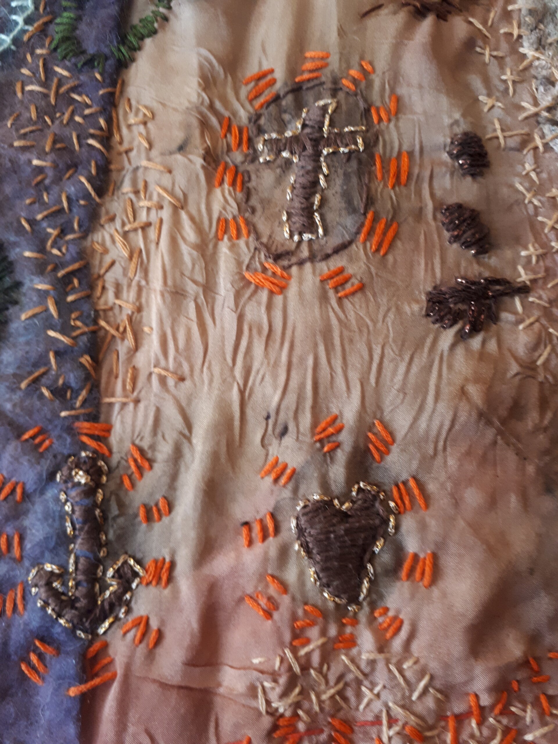 Steekje voor steekje borduren, of breien. Of het prikken met een viltnaald van de wol, het rollen en wrijven van je viltwerk, mandala tekenen, het herhalen van patronen. Met je handen in de klei, net zo; even tot jezelf komen.