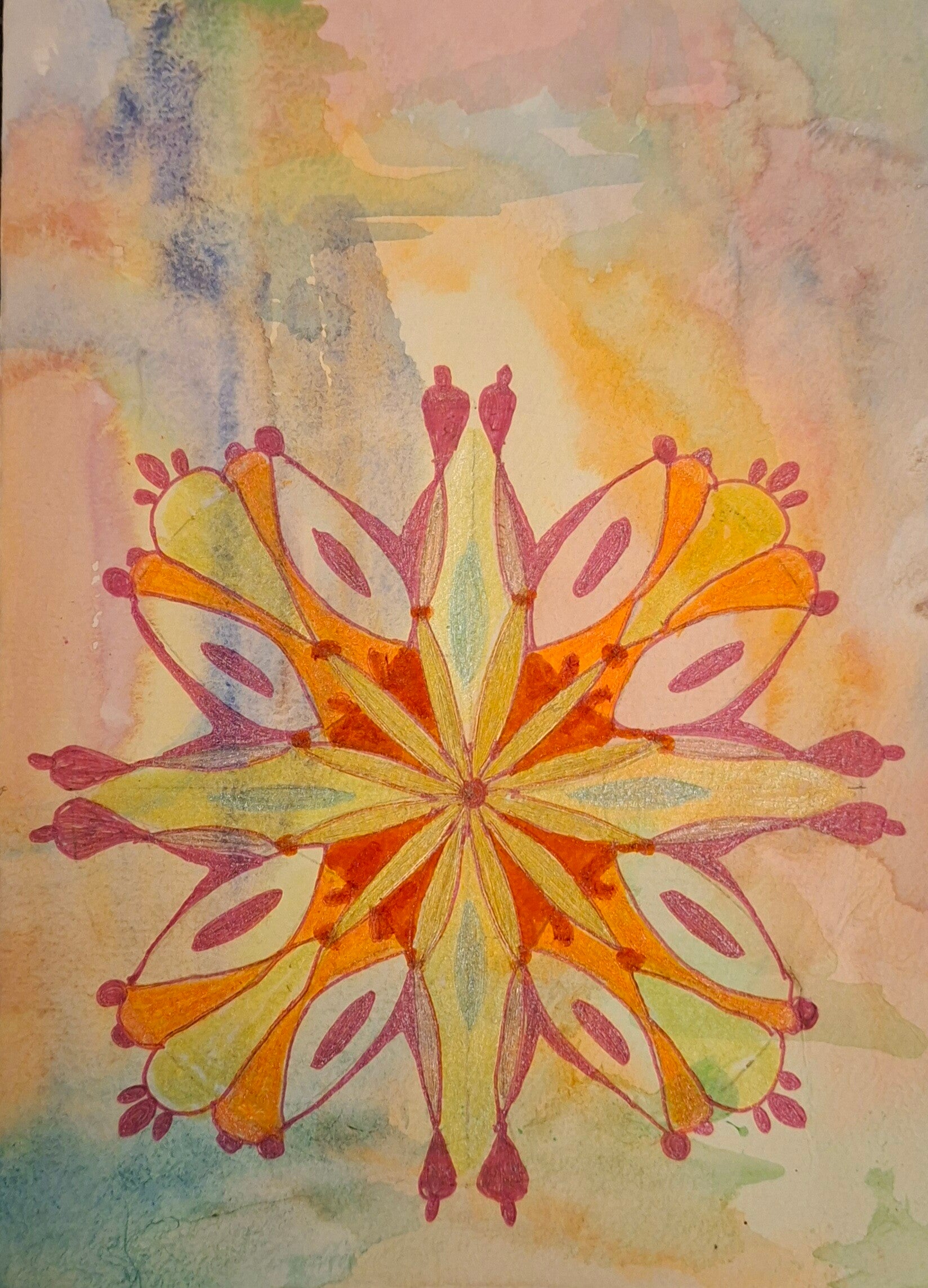 Niet verzinnen wat het eind resultaat zal gaan worden, maar gewoon beginnen met iets wat jou roept op dat moment. Stilstaan in het nu. Wat wil er door jou heen stromen. Even stil staan in de hectiek van alle dag.
