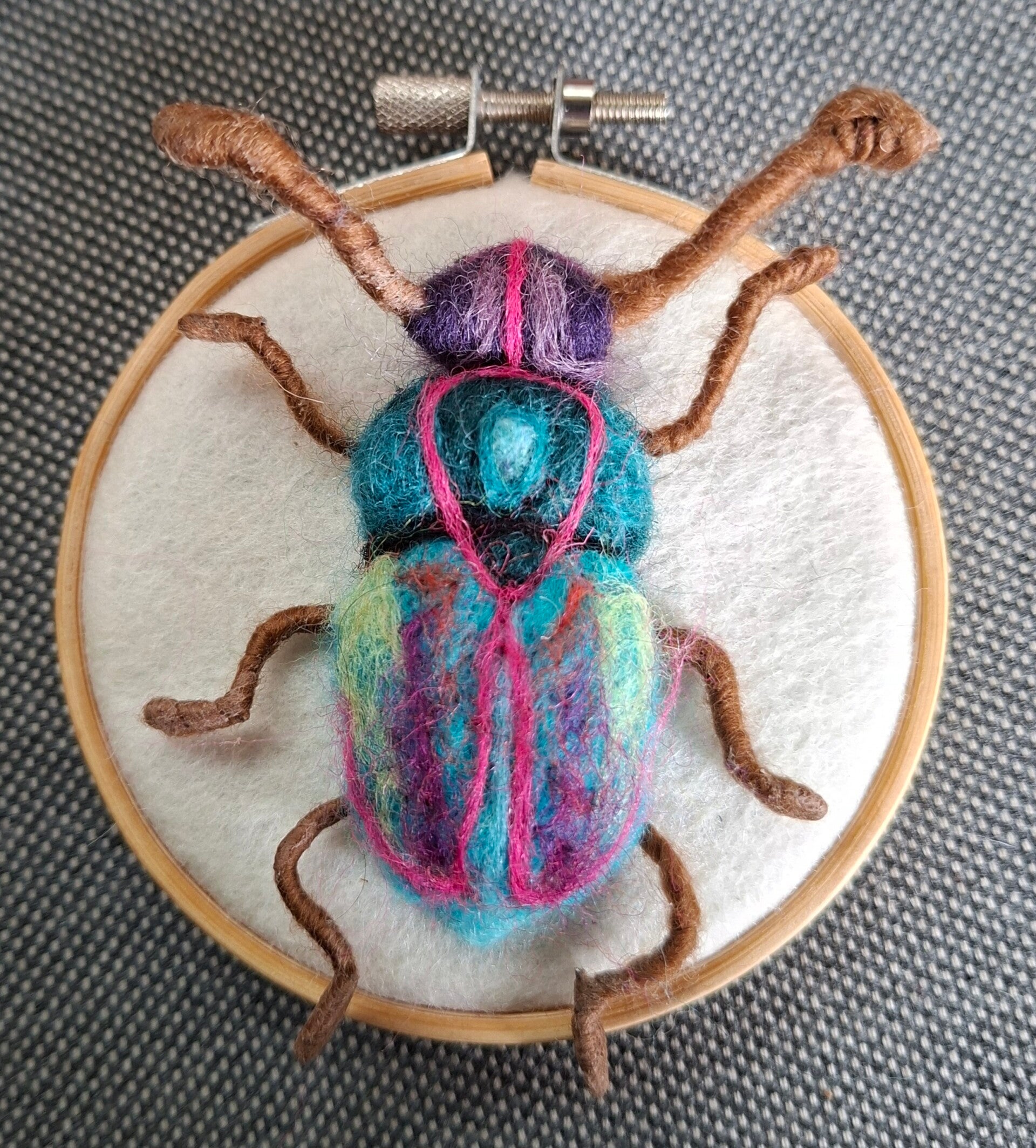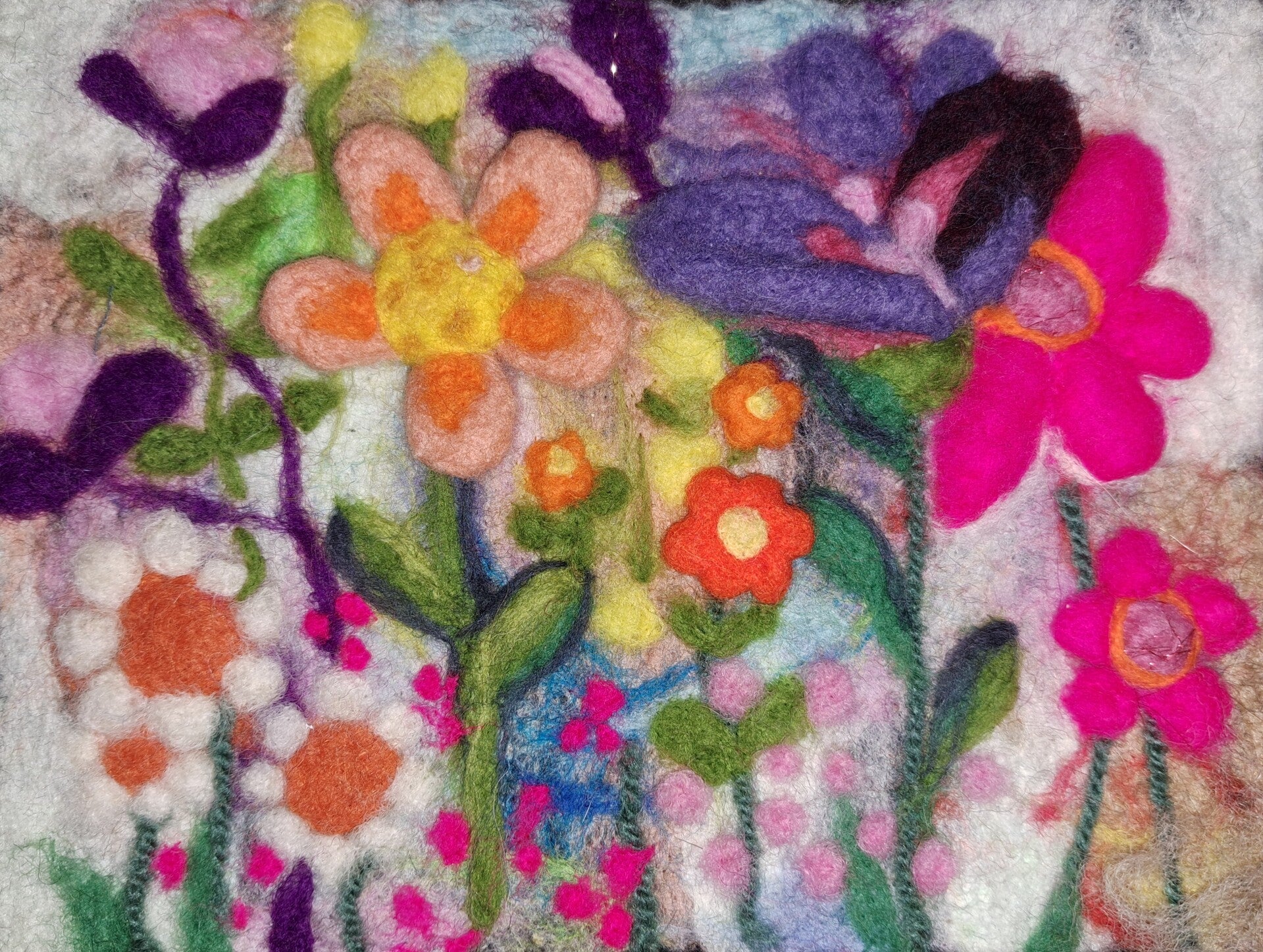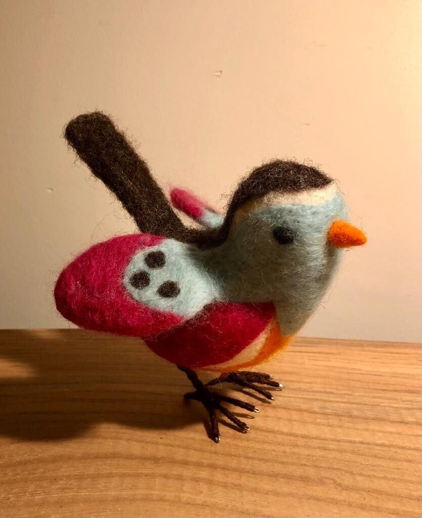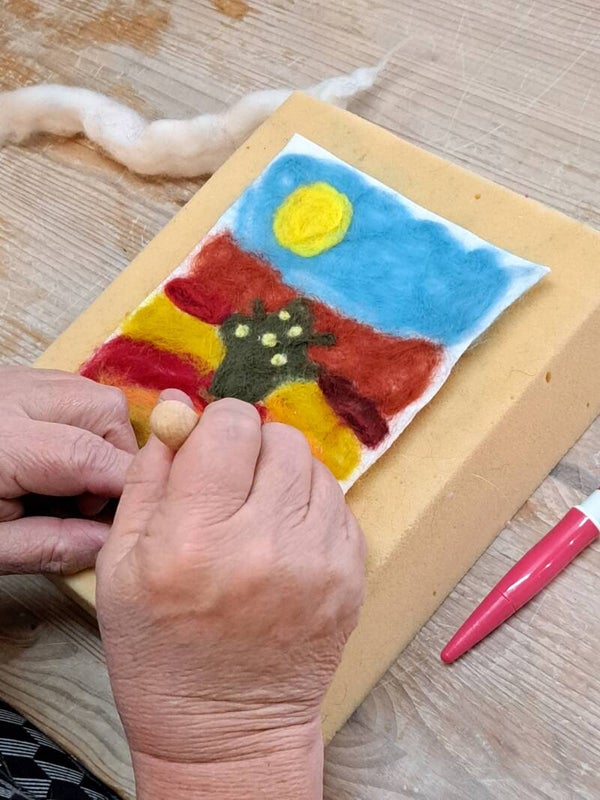 Je kunt op een lapje naaldvilten, bijvoorbeeld een landschap of 3 D naaldvilten. Zoals een vogeltje.